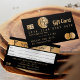 An elegant modern, stylish beauty Hair and makeup artist credit card style gift certificate business card with a modern script font typography on a chic black and gold foil. all text is customizable, add your social media. Featuring faux gold stripe. Add your logo, your monogram.