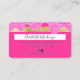 An elegant modern, stylish beauty Hair and makeup artist credit card style business card with a modern script font typography on a chic faux pink glitter drips and glam bright neon pink trendy background. all text is customizable, add your social media. Featuring faux gold stripe. Add your logo, your monogram and QR code.
