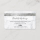 An elegant modern, stylish beauty Hair and makeup artist credit card style business card with a modern script font typography on a chic glam white marble trendy background. all text is customizable, add your social media. Featuring faux silver stripe. Add your logo, your monogram and QR code.