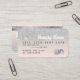 An elegant modern, stylish beauty Hair and makeup artist credit card style business card with a modern script font typography on a chic faux gray silver glitter ombre gradient and glam soft pastels blush pink trendy background. all text is customizable, add your social media. Featuring faux silver stripe. Add your logo, your monogram and QR code.