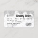 An elegant modern, stylish beauty credit card style business card with a modern script font typography on a chic faux silver glitter drips on luxury white marble. all text is customizable, add your social media. Featuring faux rose gold stripe. Add your logo, your monogram and QR code.
