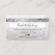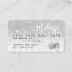 An elegant modern, stylish Hair and makeup artist credit card style business card with a modern script font typography on a chic faux gray silver glitter ombre gradient and glam white marble trendy background. all text is customizable, add your social media. Featuring faux silver stripe. Add your logo, your monogram and QR code.