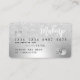 An elegant modern, stylish Hair and makeup artist credit card style business card with a modern script font typography on a chic faux gray silver metallic foil glam trendy background and a silver glitter sparkles ombre. all text is customizable, add your social media. Featuring faux silver stripe. Add your logo, your monogram and QR code.
