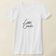 My overall review is that the T-shirt is nice, it fits true to size however the font is significantly smaller than advertised and you can't read it. The printing is unreadable and there is a strain to read it. It does not look like the advertised product. Maybe the shirt color is darker or a larger more visible font should have been used. Photos with and without flash and font is barely legible.