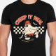 My 11 yo wore adult XL (5’7” 165#). The 8yo is small framed. She wore adult small and tied it in the back. Grandma wore adult large with long sleeve shirt underneath. Tall girl adult medium. Dark haired male adult large. Good quality dark Heather gray, Gildan brand shirt. -it was next up from basic choice and cost about $20 per shirt. Not too thick or thin. Washed and dried well, no major shrinkage. Not see-through. Can wear a bra under it fine. Screen print is just as shown and well done, front and back.