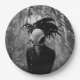 A Stylish and spooky Creepy Bird Skull in dark haunted forest paper plate for your party.