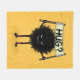 Hug blanket with a cute evil monster - grinning hairy character from the family of the Evil Flower Bug. It holds a sign with the hand-lettered world “Hug?”. This friendly weird creature has nice little toeless socks just to keep its feet warm in this unfriendly world.