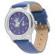 This awesome watch features a digital art image of a cute Halloween Wolf. The wolf is gray with cute blue eyes and a fluffy tail. It has black paws and has its arms wide open looking cute and scary at the same time. A fun Halloween design for all ages.