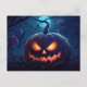 Imagine a moonlit night filled with whispers of the unknown – our postcard transports you to this mystical scene. The giant jack-o' lantern casts its warm glow, casting eerie shadows across the forest and inviting you to explore the secrets that lie within.