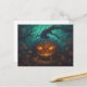 Imagine a moonlit night filled with whispers of the unknown – our postcard transports you to this mystical scene. The centered creepy jack-o' lantern casts its eerie glow, casting unsettling shadows across the forest and inviting you to explore the secrets that lie within.