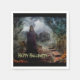 Welcome to my cursed home, enter if you dare! Macabre, gothic horror illustration of a creepy spirit in a dark forest with a gargoyle, strange mushrooms and ravens. Great gift for Halloween