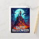This Halloween postcard features an illustration of a haunted house, under a full moon. Please feel free to adjust all the available options as you wish.