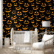 Create a feature wall in your home this Halloween with this creepy pumpkin faces patterned wallpaper in orange and black