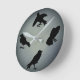 Creepy Raven Silhouettes Gray Halloween Round Clock