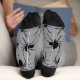 Gothic grey socks patterned with big black spiders with red eyes. Great for spider lovers or for Halloween.