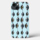 Creepy eye iPhone case with a weird pattern created from a cool digital ink illustration of staring blue and green eyes with long eyelashes arranged like garlands.