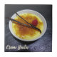 Creme brulee on slate with raspberry and vanilla ceramic tile