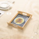 This is a well made, sturdy wooden tray with a flawless black finish and lovely map on the tray surface. It is both vintage & modern at the same time. Looks exactly like the photo; does not disappoint. So nice to find something of quality individually made and not the mass-produced 'shabby chic' merchandise seen in stores. I am so pleased to be able to give this to my college-age niece for her birthday. This can be used as a tray to hold jewelry or toiletries, or hung on the wall as art. The map surface is sealed (it is slightly shiny) so would be moisture resistant. It is well worth the asking price but I was able to apply a sale code as well. Very happy with my purchase. Map is crisp & clear and sealed with a water-resitant finish.