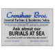 Crenshaw Bros. Alternative Mortuary Solutions promotional advertisement merch for the Burial At Sea package. Dark, macabre funeral humor at its finest. Hilarious Crenshaw line is parody of mortuary services and viral-age gonzo marketing techniques plus a little "sleeps with the fishes" humor thrown in for good measure.