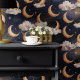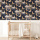 Transform your space into a celestial dreamscape with this enchanting moon and clouds wallpaper. Golden crescent moons and soft clouds drift across a deep blue sky, creating a calming and magical atmosphere. This peel and stick wallpaper is easy to apply and remove, making it perfect for adding a touch of whimsical charm to any room.