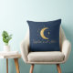 Embrace the beauty of the night sky with our Dark Navy Blue Throw Pillow. The captivating gold crescent moon and stars, set against the deep navy blue background, create an ambiance of celestial wonder. Personalize it with your names or any special words, and let this pillow be a symbol of your love and the magic of the celestial realm.