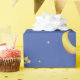Yellow crescent moon with stars in repeat pattern, background color is customizable currently set to blue