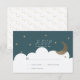 This cute baptism RSVP/reply/responce card features a navy blue background with faux gold glitter stars, the crescent moon, and white clouds. The reverse side features a white background faux gold random dot patterns. Personalize for your needs. You can find more matching products at my store.