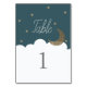 This cute table number card features a navy blue background with faux gold glitter stars, the crescent moon, and white clouds. The reverse side features a white background faux gold random dot patterns. Personalize for your needs. You can find more matching products at my store.