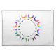 Set a table that speaks volumes with this vibrant and elegant cloth placemat. Featuring a circle of crescent moons in pride flag colors surrounding a delicate inner ring of black hearts, this design brings a quietly powerful message of love and inclusivity to any celebration or everyday meal. Perfect for Pride celebrations or year-round queer joy.