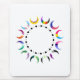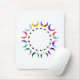 Add a bold touch of identity to your workspace with this mousepad featuring a vibrant circle of crescent moons in pride flag colors, encircling a striking line of black hearts.
