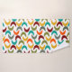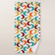 This towel set has a orange washcloth, a grey hand towel, and a bath towel with a mid-century modern design of crescents in retro colors. Want the same design with different colors? Message me.
