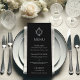 An elegant menu with a vintage air, recommended for a wedding with black and silver wedding colors.