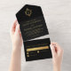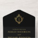 Crest Black Faux Gold Elegant Wedding Monogram All In One Invitation