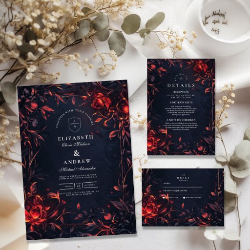 We have hundreds if not thousands of different invitation designs like Gothic Wedding Invitations and Halloween Wedding Invitations. However, if none of these designs match your needs you can customize any existing design or make your own from scratch so that you can set the stage for a memorable celebration.