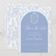 Delft blue floral save the date card, designed in a refined blend of chinoiserie and French toile de Jouy style. The soft botanical illustrations frame an arched layout featuring an elegant wedding crest monogram, perfect for couples who love vintage, historic, and European-inspired aesthetics. Classic script typography pairs beautifully with the ceramic-blue palette, making this design an effortless nod to the tradition of “something blue.” Fully customizable with your names, date, and location, it’s an exquisite choice for any romantic or sophisticated wedding theme.