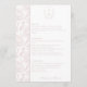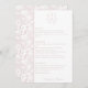 Blush Pink Monogram Crest Wedding Menu Card: Vintage-inspired line art monogram crest with elegant typography. Features a chinoiserie floral pattern on the reverse and on the side for timeless sophistication. Enter the design tool option if adjustments are needed when your menu text is added.
