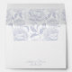 Dusty Blue Monogram Crest Wedding Envelope: Vintage-inspired line art monogram crest with elegant dusty pale blue typography. Features a chinoiserie floral pattern on the inside for timeless sophistication. Elegant script font for a formal and classic style.