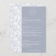 Dusty Blue Monogram Crest Wedding Menu Card: Vintage-inspired line art monogram crest with elegant typography. Features a chinoiserie floral pattern on the reverse and on the side for timeless sophistication. Enter the design tool option if adjustments are needed when your menu text is added.