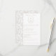 Pale Taupe Monogram Crest Wedding Invitation suite RSVP card: Vintage-inspired line art monogram crest with elegant pale taupe typography. Features a chinoiserie floral pattern of peonies for timeless sophistication.