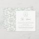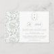 Sage Green Monogram Crest Wedding Details card: Vintage-inspired line art monogram crest with elegant sage green typography. Features a chinoiserie floral pattern for timeless sophistication. Elegant script font for a formal and classic style. Add your own webside with a custom QR code on the reverse or simply delete it for a more traditional card.