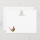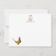 Monogrammed brown crest flat note card with watercolor feathers and a pheasant at the bottom.