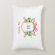 Decorate your home for the holidays with this Personalized watercolor crest with holiday greenery with Monogram in the center accent throw pillow with cute red and white candy cane pattern in the back.
