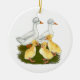 The crest ornament can be added to any duck breed. Probably the most popular are the snow white birds whose adorable ducklings are shades of yellow.