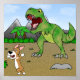As snarky and full of attitude as the Pembroke Welsh Corgi is, the dog is still smart enough to know that when you see a Tyrannosaurus Rex, the most intelligent thing to do is RUN FOR YOUR LIFE! This prehistoric scene has a T-Rex dinosaur roaring mightily at the little pooch as he panics and runs for it as fast as his nubby legs will go! Funny corgi poster by Susan Stoneman.