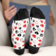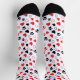 These adorable and vibrant socks are perfect for any dog or cat lover! They feature a charming, all-over seamless pattern of black paw prints and a mix of red and black hearts on a crisp white background. The design is cheerful and makes a wonderful gift for pet parents, vets, or anyone who cherishes their furry friends. With black toes and heels for a sporty contrast, these comfortable, mid-calf socks are great for everyday wear, adding a touch of pet-loving flair to any outfit. Show off your love for animals with every step you take!