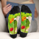 This fun Halloween socks are bright and colorful. The small print is crisp and shows the fun details. The softness of the socks feels nice on my feet and ankles. .