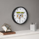 The size of the clock is dramatic and the abstract alcohol ink design is soothing and intricate at the same time. I chose the black frame that adds pop to the blue and gold design. The gold printing would be better in a slightly darker or larger font. I love it and I’m looking for just the right place in ny new apartment. I would recommend this clock for a personal gift or a present. I feel that the quality is excellent for the money! I’m a bit of a clock nut so I’m pretty particular about my purchases. The clock is larger in diameter than many if the clocks I have, so it stands out very well. I think a slightly darker printing color and a moderately larger size would best suit a professional decor or add more impact in a work place item.