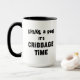 Shake a peg It's cribbage time is a humorous play on the phrase, Shake a leg, and will tickle the funny bone of your favorite cribbage player at birthdays and holidays.