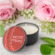 Cricket Design Mini Soy Candle Favor with customizable text and background color.