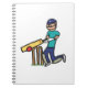 Cricket design shows a batsman kneeling down to hit the ball out of the ground. Plays shot in front of stumps in a fun graphic for cricketers and cricket fans.